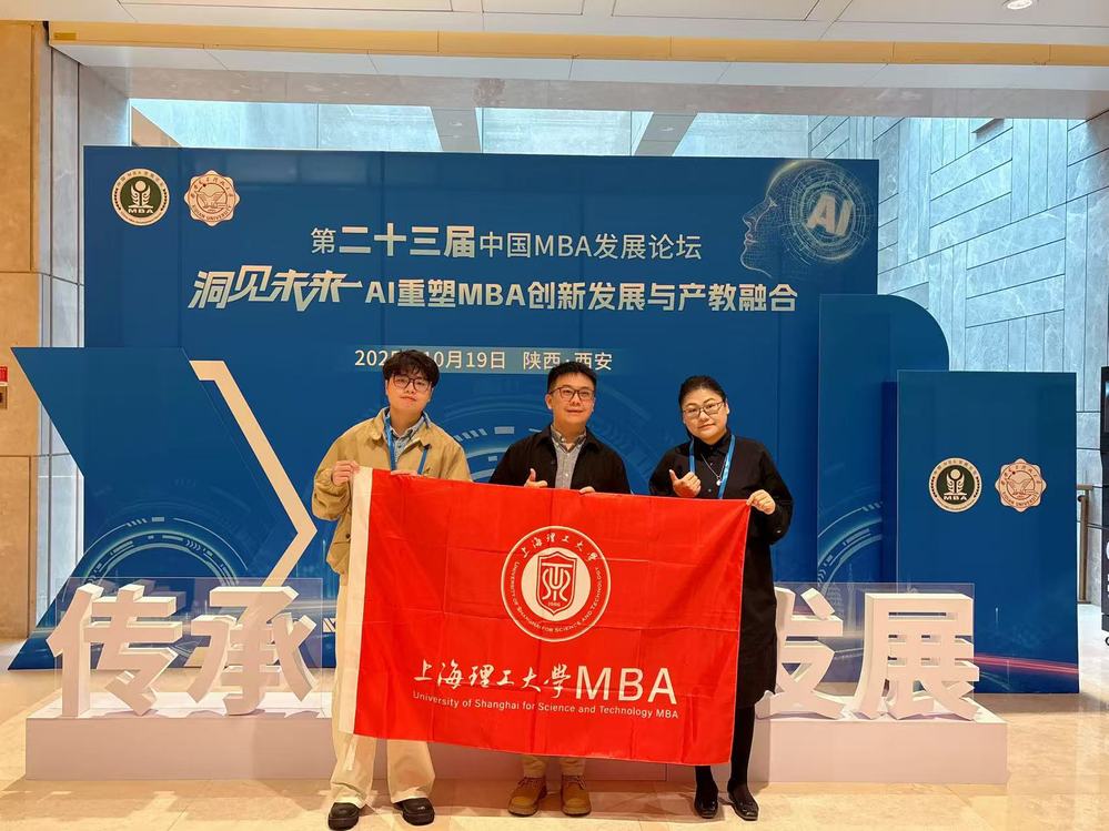 10月19日,第二十三届中国MBA发展论坛在陕西西安举行。本届论坛由西安电子科技大学主办,主题为“洞见未来:AI重塑MBA创新发展与产教融合”。国内外知名专家学者、企业高管及全国多所MBA培养院校师生代表齐聚一堂,共同探讨AI时代行业发展趋势、智能技术驱动的产业变革及未来商业模式,并探索中国MBA教育、行业重塑与人才培养三者紧密衔接的融合机制。上海理工大学MBA在本届论坛上荣获多项荣誉,上理管院专业学位教育中心学生工作主管宇文星航带队参加此次论坛。