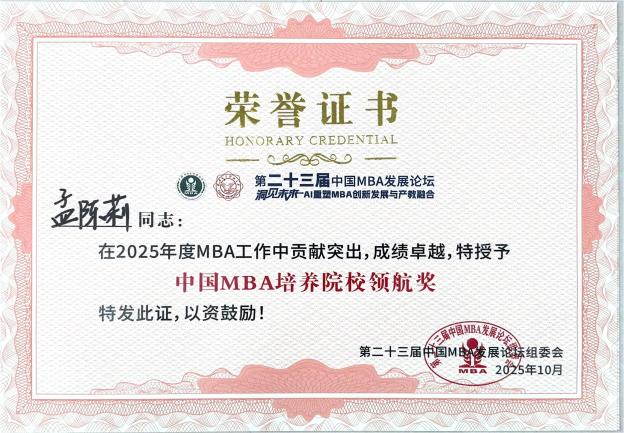 2025年度中国MBA培养院校领航奖-孟陈莉