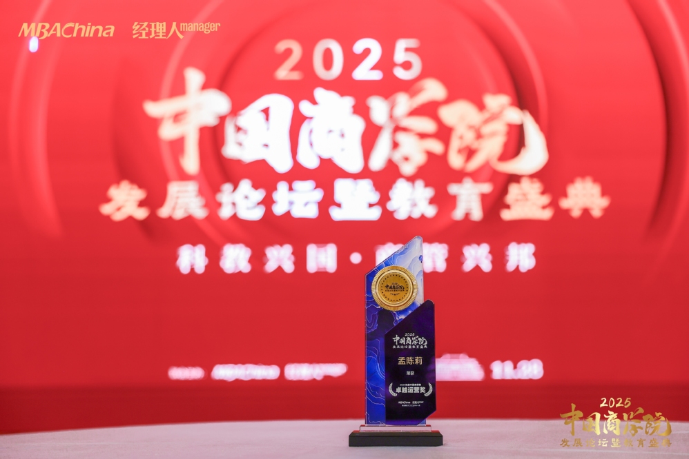 专业学位教育中心综合办公室主任孟陈莉深耕战略落地与执行环节,以前瞻性思维践行卓越运营理念,推动中心战略规划有效实施,聚焦专业学位项目的高效运营与培养体系的精准构建,在持续优化运营流程、提升学生培养体验方面务实攻坚,以扎实的战略执行成效为专业学位教育的持续成长与价值创造注入核心动力,凭借突出工作实绩荣获“2025年度中国商学院卓越运营奖”。